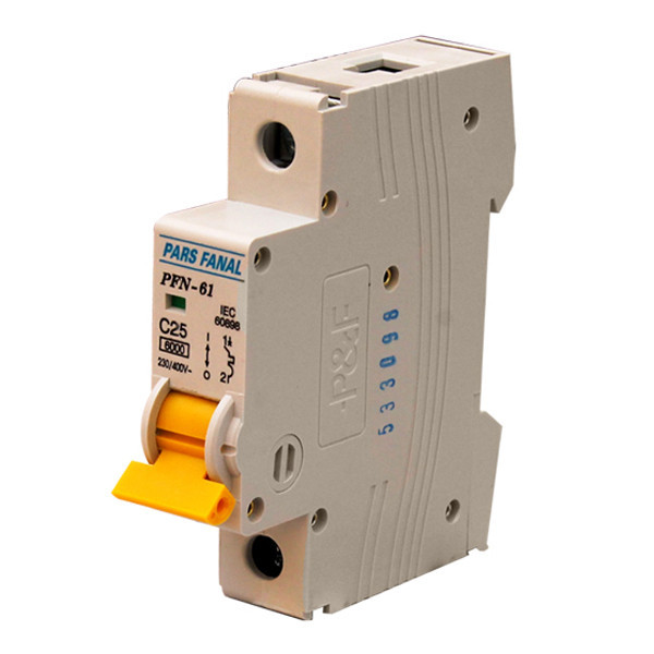 کلید مینیاتوری (MCB ) وسیله ای حفاظتی است که از تجهیزات الکتریکی و صنعتی در برابر آسیب های ناشی از اضافه بار و یا اتصال کوتاه محافظت می نماید.کلید های مینیاتوری جریان متناوب پارس فانال در سه تیپ روشنایی (B) ، موتوری (C) و سخت موتوری (D) در انواع تک پل ، تک پل با نول (1P+N) ، دو پل ، سه پل ، سه پل با نول (3P+N) و چهار پل تولید می شوند. این محصول کلید مینیاتوری تک فاز 25 آمپر تیپ C با ظرفیت قطع 6KA می باشد.