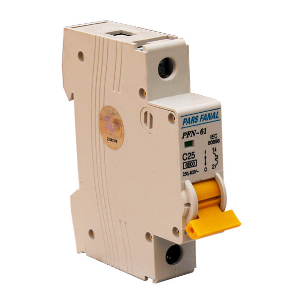 کلید مینیاتوری (MCB ) وسیله ای حفاظتی است که از تجهیزات الکتریکی و صنعتی در برابر آسیب های ناشی از اضافه بار و یا اتصال کوتاه محافظت می نماید.کلید های مینیاتوری جریان متناوب پارس فانال در سه تیپ روشنایی (B) ، موتوری (C) و سخت موتوری (D) در انواع تک پل ، تک پل با نول (1P+N) ، دو پل ، سه پل ، سه پل با نول (3P+N) و چهار پل تولید می شوند. این محصول کلید مینیاتوری تک فاز 25 آمپر تیپ C با ظرفیت قطع 6KA می باشد.